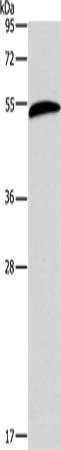 Gel: 12%SDS-PAGE, Lysate: 60 μg, Lane: Mouse liver tissue, Primary antibody: CSB-PA156662(AEBP2 Antibody) at dilution 1/225, Secondary antibody: Goat anti rabbit IgG at 1/8000 dilution, Exposure time: 20 seconds