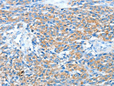 The image on the left is immunohistochemistry of paraffin-embedded Human breast cancer tissue using CSB-PA154373(AFAP1 Antibody) at dilution 1/20, on the right is treated with fusion protein. (Original magnification: ×200)