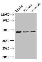 Positive WB detected in: Mouse brain tissue, Mouse kidney tissue, Mouse stomach tissue