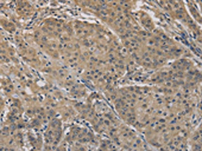 The image on the left is immunohistochemistry of paraffin-embedded Human gastric cancer tissue using CSB-PA964373(AGTRAP Antibody) at dilution 1/40, on the right is treated with fusion protein. (Original magnification: ×200)