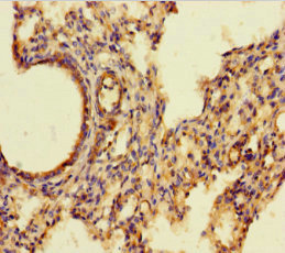 Immunohistochemistry of paraffin-embedded human lung tissue using CSB-PA00667A0Rb at dilution of 1:100