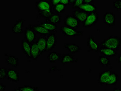 Immunofluorescent analysis of A549 cells using CSB-PA001539LA01HU at dilution of 1:100 and Alexa Fluor 488-congugated AffiniPure Goat Anti-Rabbit IgG(H+L)
