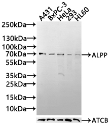 免疫原:Recombinant Human Alkaline phosphatase, placental type protein (260-520AA)