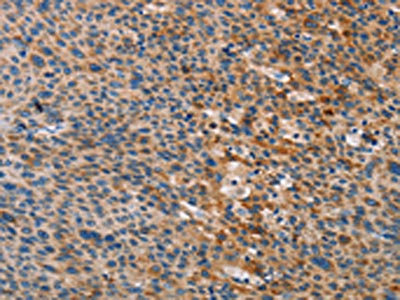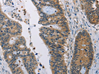 The image on the left is immunohistochemistry of paraffin-embedded Human colon cancer tissue using CSB-PA083278(AMBP Antibody) at dilution 1/35, on the right is treated with fusion protein. (Original magnification: ×200)