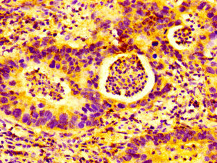 IHC image of CSB-PA333164LA01HU diluted at 1:100 and staining in paraffin-embedded human bladder cancer performed on a Leica BondTM system. After dewaxing and hydration, antigen retrieval was mediated by high pressure in a citrate buffer (pH 6.0). Section was blocked with 10% normal goat serum 30min at RT. Then primary antibody (1% BSA) was incubated at 4°C overnight. The primary is detected by a biotinylated secondary antibody and visualized using an HRP conjugated SP system.