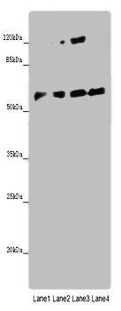 Observed band size: 58 kDa -