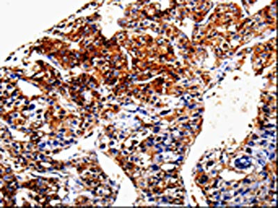 The image is immunohistochemistry of paraffin-embedded Human cervical cancer tissue using CSB-PA118689(ANXA7 Antibody) at dilution 1/150. (Original magnification: ×200)