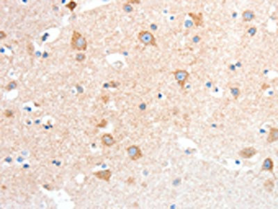 The image on the left is immunohistochemistry of paraffin-embedded Human brain tissue using CSB-PA944795(ANXA8 Antibody) at dilution 1/25, on the right is treated with fusion protein. (Original magnification: ×200)