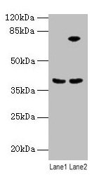 Predicted band size: 39 kDa