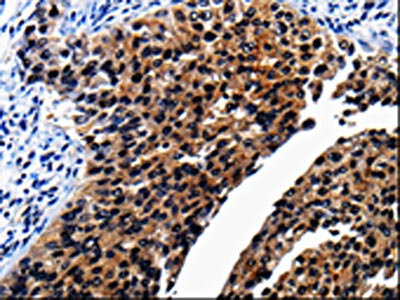 The image on the left is immunohistochemistry of paraffin-embedded Human renal cancer tissue using CSB-PA928455(AP1B1 Antibody) at dilution 1/25, on the right is treated with synthetic peptide. (Original magnification: ×200)