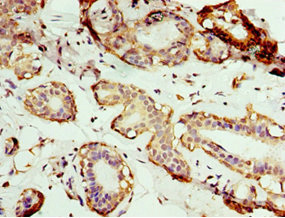 Immunohistochemistry of paraffin-embedded human breast cancer using CSB-PA895771ESR1HU at dilution of 1:100