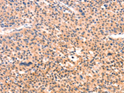 The image on the left is immunohistochemistry of paraffin-embedded Human thyroid cancer tissue using CSB-PA782005(APBA2 Antibody) at dilution 1/80, on the right is treated with synthetic peptide. (Original magnification: ×200)