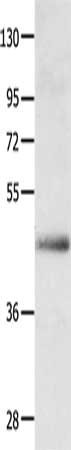 Gel: 10%SDS-PAGE, Lysate: 40 μg, Lane: OP9 cells, Primary antibody: CSB-PA963250(APLNR Antibody) at dilution 1/250, Secondary antibody: Goat anti rabbit IgG at 1/8000 dilution, Exposure time: 10 minutes