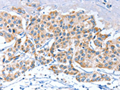 The image on the left is immunohistochemistry of paraffin-embedded Human breast cancer tissue using CSB-PA620593(APOBEC3D Antibody) at dilution 1/80, on the right is treated with synthetic peptide. (Original magnification: ×200)