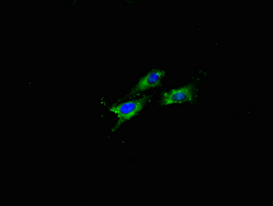 Immunofluorescent analysis of Hela cells using CSB-PA07179A0Rb at dilution of 1:100 and Alexa Fluor 488-congugated AffiniPure Goat Anti-Rabbit IgG(H+L)