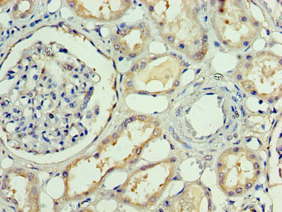 Immunohistochemistry of paraffin-embedded human kidney tissue using CSB-PA07179A0Rb at dilution of 1:100