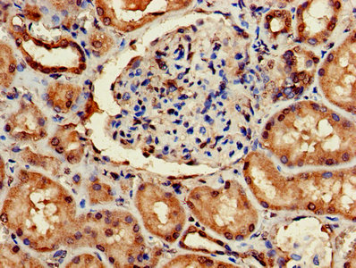Immunohistochemistry of paraffin-embedded human kidney tissue using CSB-PA00915A0Rb at dilution of 1:100