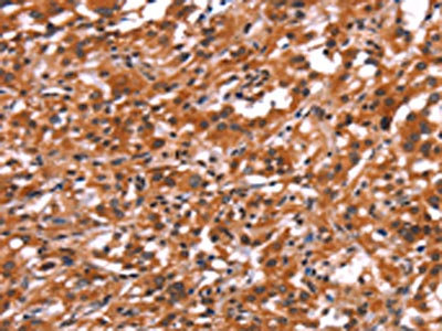 The image on the left is immunohistochemistry of paraffin-embedded Human liver cancer tissue using CSB-PA789110(ARRB1 Antibody) at dilution 1/15, on the right is treated with synthetic peptide. (Original magnification: ×200)