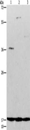 組織特異性:Ubiquitous. Expressed at high levels in peripheral tissues including prostate, placenta, pancreas, heart, kidney, pituitary gland, lung and testis. Expressed at low levels in the brain.
