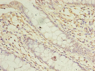 Immunohistochemistry of paraffin-embedded human colon cancer using CSB-PA863994LA01HU at dilution of 1:100
