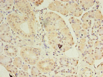Immunohistochemistry of paraffin-embedded human pancreatic tissue using CSB-PA863994LA01HU at dilution of 1:100
