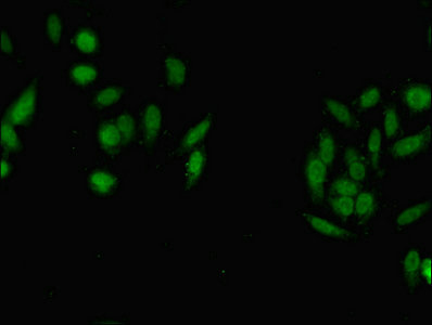 Immunofluorescent analysis of Hela cells using CSB-PA883363LA01HU at dilution of 1:100 and Alexa Fluor 488-congugated AffiniPure Goat Anti-Rabbit IgG(H+L)