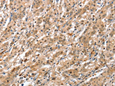 The image on the left is immunohistochemistry of paraffin-embedded Human gastric cancer tissue using CSB-PA313566(ATG12 Antibody) at dilution 1/70, on the right is treated with fusion protein. (Original magnification: ×200)