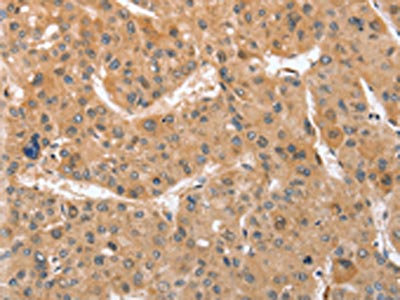 The image on the left is immunohistochemistry of paraffin-embedded Human liver cancer tissue using CSB-PA313566(ATG12 Antibody) at dilution 1/70, on the right is treated with fusion protein. (Original magnification: ×200)