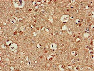Immunohistochemistry of paraffin-embedded human brain tissue using CSB-PA012203LA01HU at dilution of 1:100