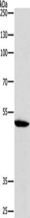 Gel: 10%SDS-PAGE, Lysate: 40 μg, Lane: 231 cells, Primary antibody: CSB-PA438009(ATG4A Antibody) at dilution 1/210, Secondary antibody: Goat anti rabbit IgG at 1/8000 dilution, Exposure time: 2 minutes