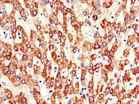 Immunohistochemistry of paraffin-embedded human liver cancer using CSB-PA002344HA01HU at dilution of 1:100