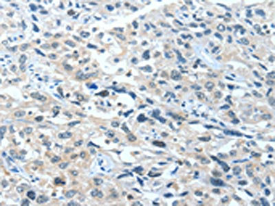 The image on the left is immunohistochemistry of paraffin-embedded Human esophagus cancer tissue using CSB-PA213653(BAD Antibody) at dilution 1/60, on the right is treated with fusion protein. (Original magnification: ×200)