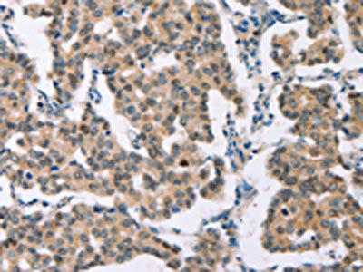 The image on the left is immunohistochemistry of paraffin-embedded Human gastic cancer tissue using CSB-PA066517(ADGRB2 Antibody) at dilution 1/25, on the right is treated with synthetic peptide. (Original magnification: ×200)