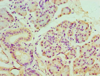 Immunohistochemistry of paraffin-embedded human pancreatic tissue using CSB-PA854079ESR1HU at dilution of 1:100