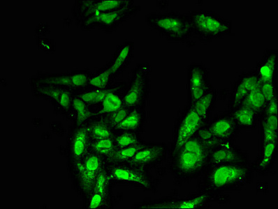 Immunofluorescent analysis of Hela cells using CSB-PA845172LA01HU at dilution of 1:100 and Alexa Fluor 488-congugated AffiniPure Goat Anti-Rabbit IgG(H+L)