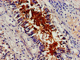 Immunohistochemistry of paraffin-embedded human colon cancer using CSB-PA002593LA01HU at dilution of 1:100