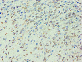 Immunohistochemistry of paraffin-embedded human endometrial cancer using CSB-PA002607ESR2HU at dilution of 1:100