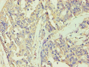 Immunohistochemistry of paraffin-embedded human breast cancer using CSB-PA002607ESR2HU at dilution of 1:100