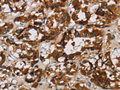 The image is immunohistochemistry of paraffin-embedded Human thyroid cancer tissue using CSB-PA582788(BCL2L12 Antibody) at dilution 1/20. (Original magnification: ×200)