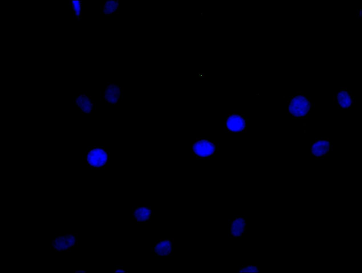 Immunofluorescence staining of Hela cell with 5% goat serum, counter-stained with DAPI. The cells were fixed in 4% formaldehyde and blocked in 10% normal Goat Serum. The cells were then incubated with the antibody overnight at 4C. The secondary antibody was Alexa Fluor 488-congugated AffiniPure Goat Anti-Rabbit IgG(H+L).