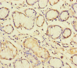 Immunohistochemistry of paraffin-embedded human gastric cancer using CSB-PA890745DSR1HU at dilution of 1:100
