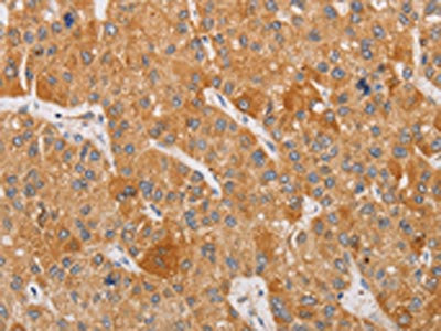 The image on the left is immunohistochemistry of paraffin-embedded Human liver cancer tissue using CSB-PA084239(BNIP3 Antibody) at dilution 1/20, on the right is treated with fusion protein. (Original magnification: ×200)