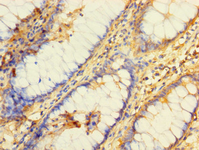 Immunohistochemistry of paraffin-embedded human colon tissue using CSB-PA002798LA01HU at dilution of 1:100