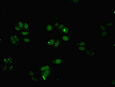 Immunofluorescent analysis of HepG2 cells using CSB-PA888000ESR1HU at dilution of 1:100 and Alexa Fluor 488-congugated AffiniPure Goat Anti-Rabbit IgG(H+L)