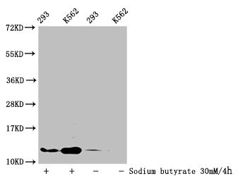 Detected samples: 293 whole cell lysate, K562 whole cell lysate; Untreated (-) or treated (+) with 30mM sodium butyrate for 4h