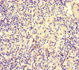 Immunohistochemistry of paraffin-embedded human spleen tissue using CSB-PA004259LA01HU at dilution of 1:100