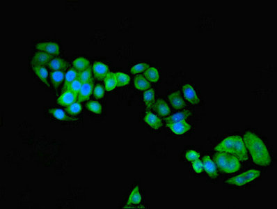 Immunofluorescent analysis of PC-3 cells using CSB-PA842710LA01HU at dilution of 1:100 and Alexa Fluor 488-congugated AffiniPure Goat Anti-Rabbit IgG(H+L)