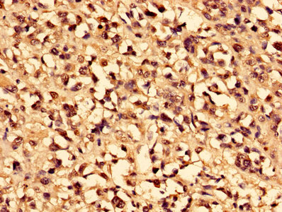Immunohistochemistry of paraffin-embedded human melanoma using CSB-PA004364HA01HU at dilution of 1:100