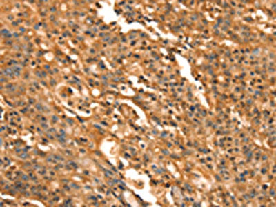 The image on the left is immunohistochemistry of paraffin-embedded Human gastric cancer tissue using CSB-PA942999(CACNA1E Antibody) at dilution 1/15, on the right is treated with synthetic peptide. (Original magnification: ×200)