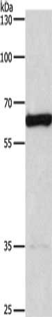 Gel: 8%SDS-PAGE, Lysate: 40 μg, Lane: Mouse spleen tissue, Primary antibody: CSB-PA224156(CACNB1 Antibody) at dilution 1/200, Secondary antibody: Goat anti rabbit IgG at 1/8000 dilution, Exposure time: 3 minutes